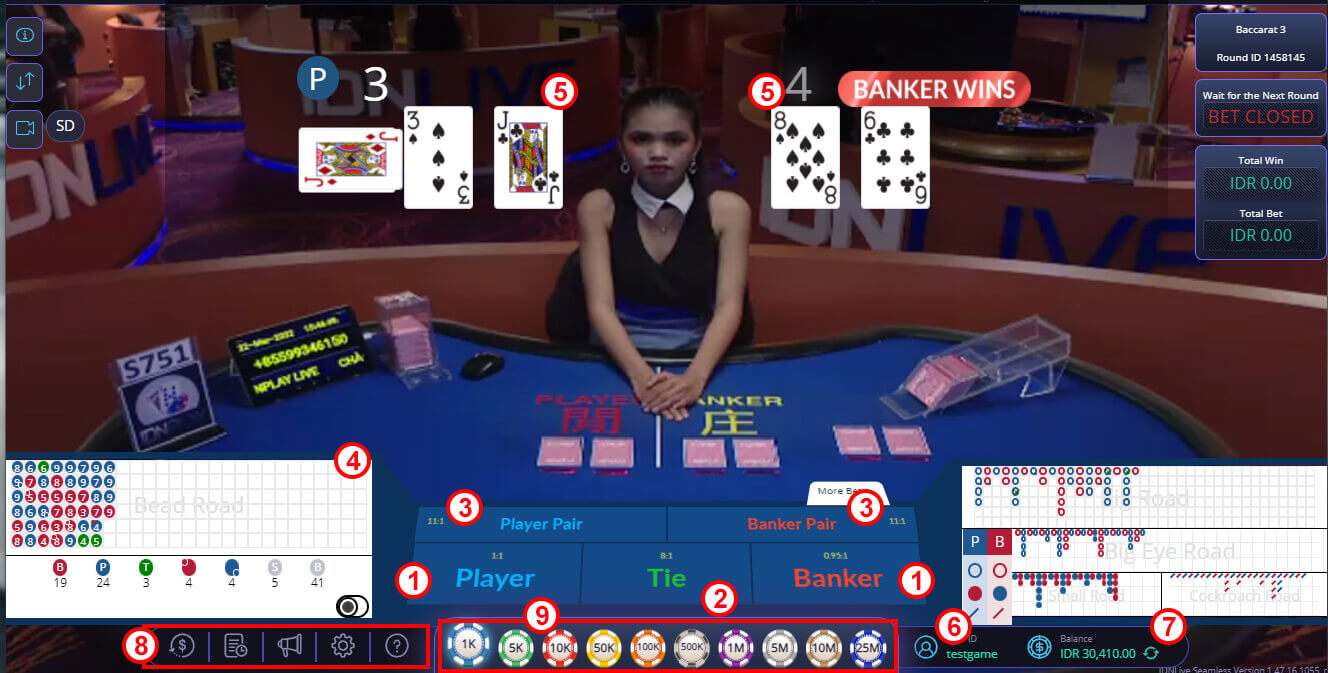 Bandarlah yang memenangkan permainan karena peringkat Straight bandar hingga angka 9 sedangkan peringkat Straight pemain hanya mencapai angka 5.
