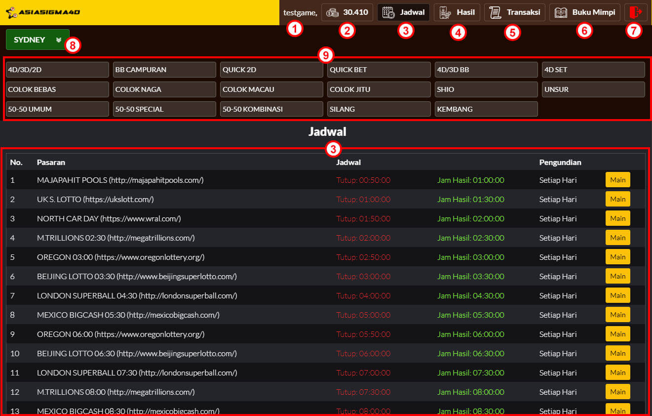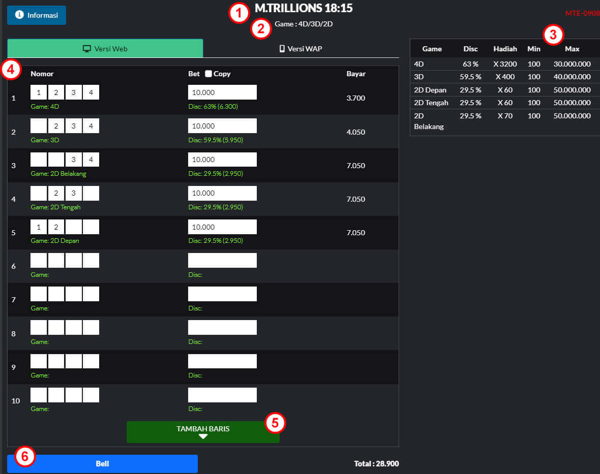 Maka pemain berhak mendapatkan kemenangan sebesar ( Rp 100.000 X 30 ) + Modal = Rp 3.090.000