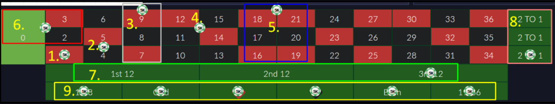 Jika menang dari satu pemain lain dalam semua baris (baris bawah, baris tengah, baris atas), maka mendapat 2x poin.